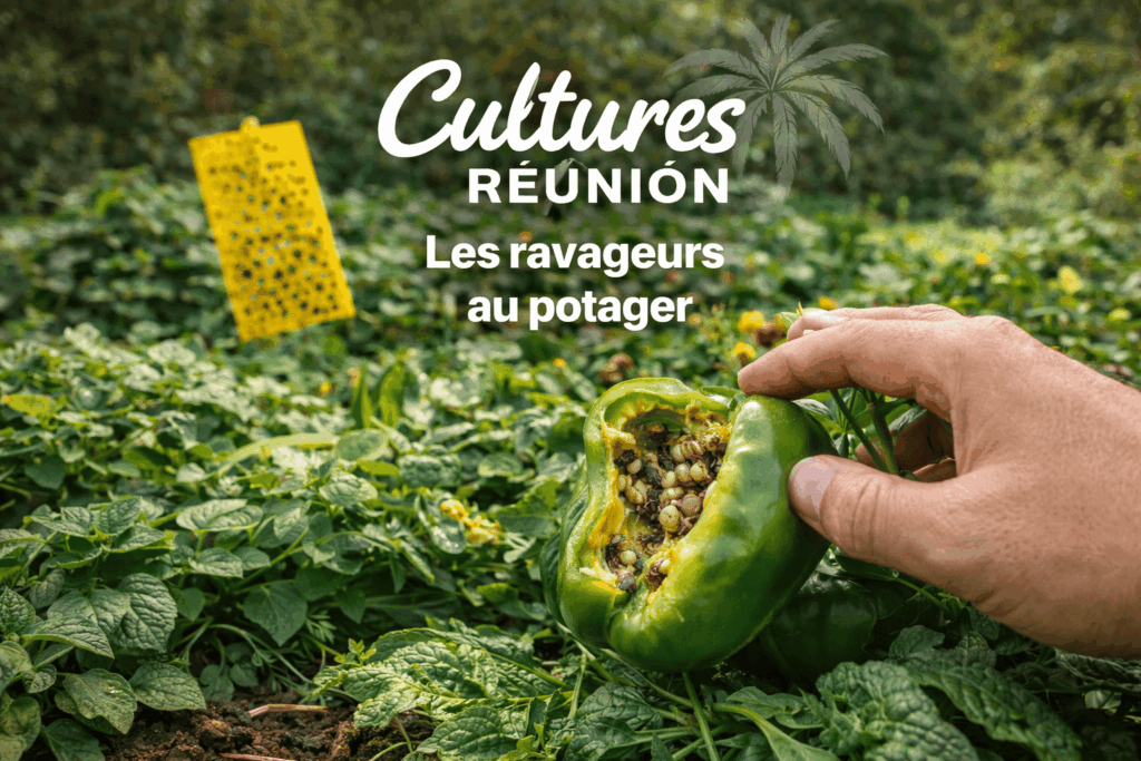 Les ravageurs les plus fréquents du potager à La Réunion Le climat chaud et humide de La Réunion favorise le développement rapide de nombreux ravageurs. Une surveillance régulière est essentielle. Mouches des fruits Très présentes en saison chaude Attaquent courgettes, chouchou, margoze Prévention : ✔️ Filets✔️ Ramassage régulier✔️ Pièges biologiques Pucerons Apparition rapide Transmission de […]